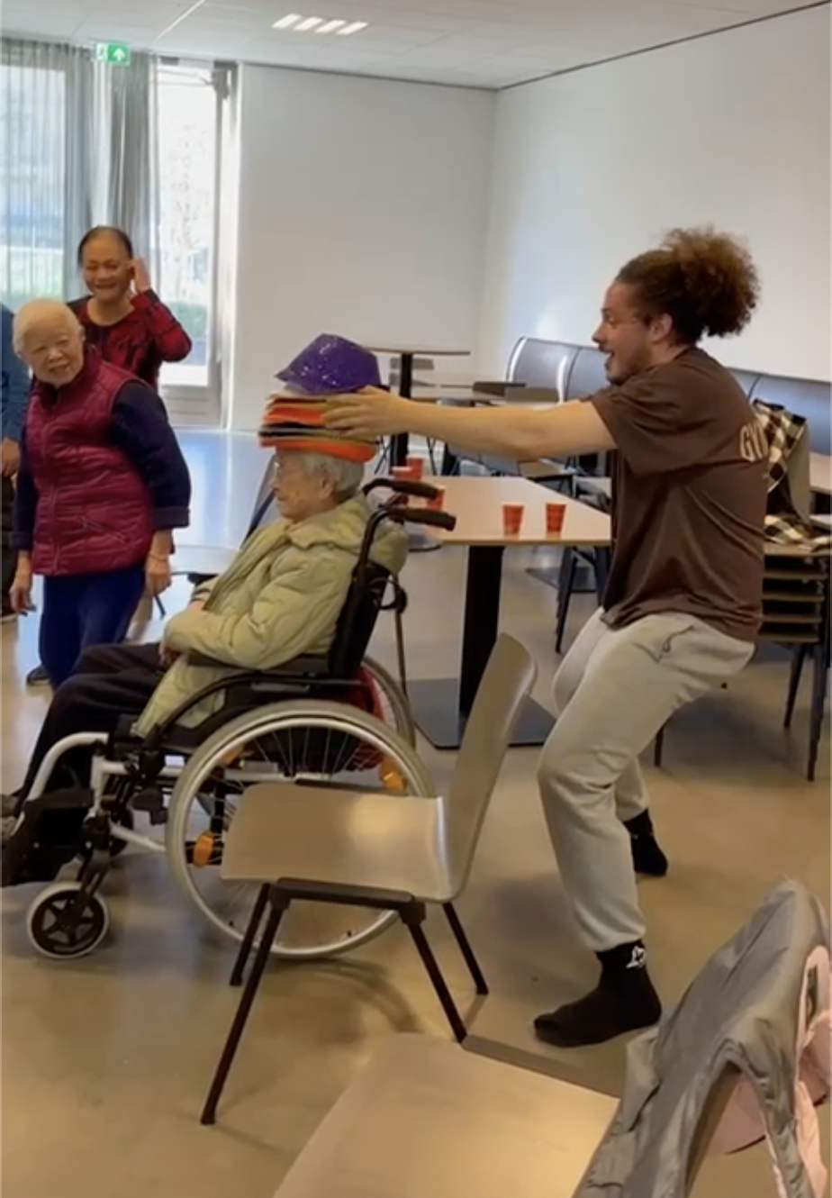 Onze docent Freerk Lenselink van Dance Connect verraste onze ouderen met een verzameling kleurrijke hoeden!🎩