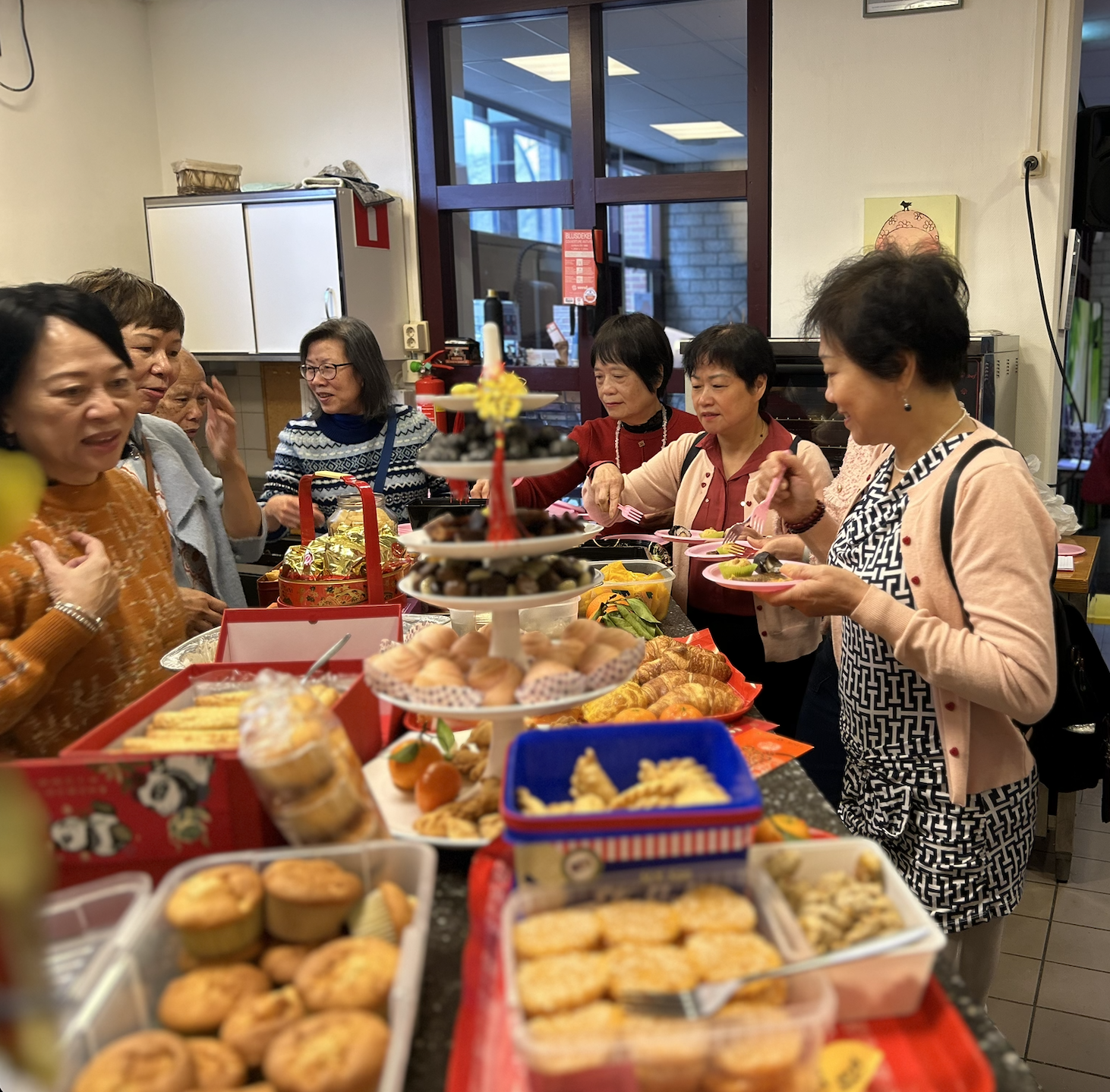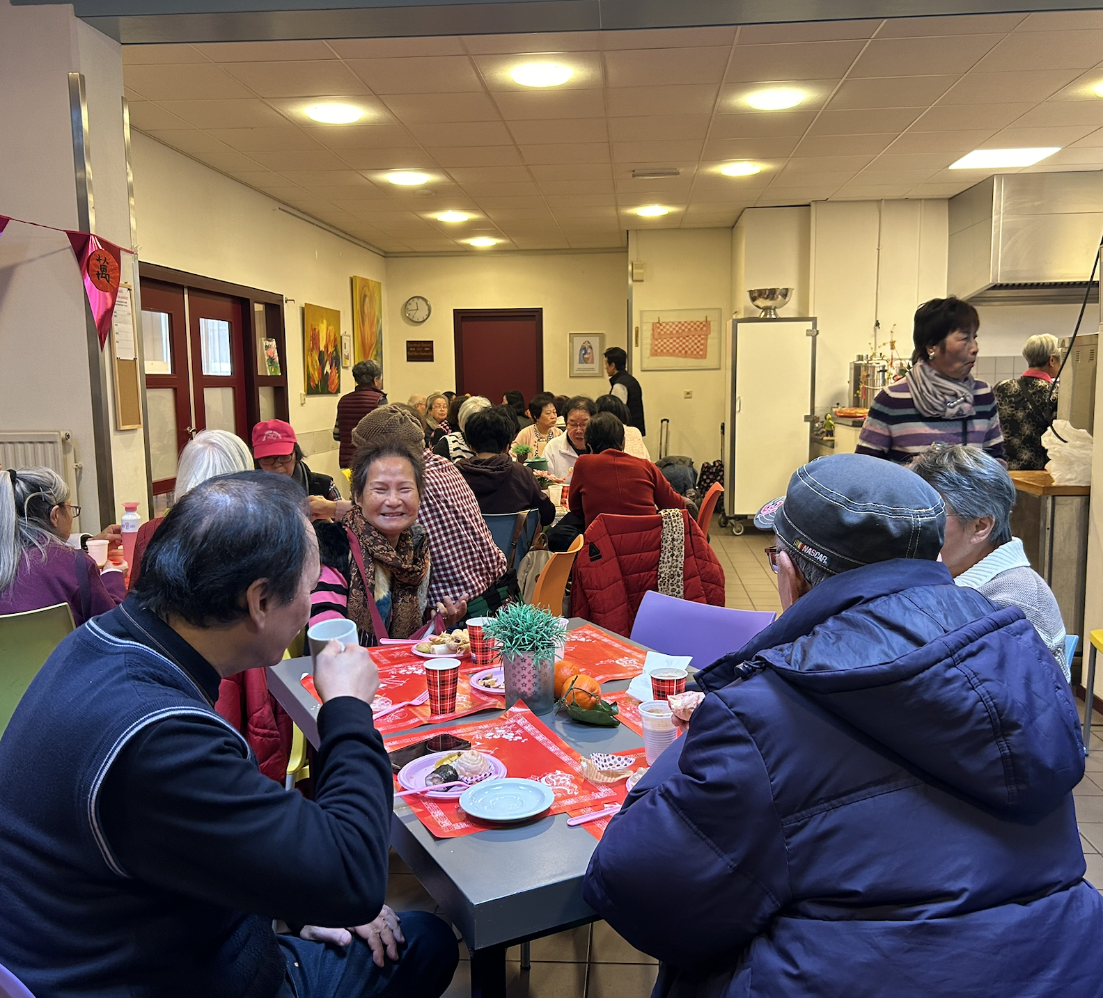 Onder het genot van heerlijk eten en elkaars gezelschap vieren de ouderen samen Chinees Nieuwjaar.